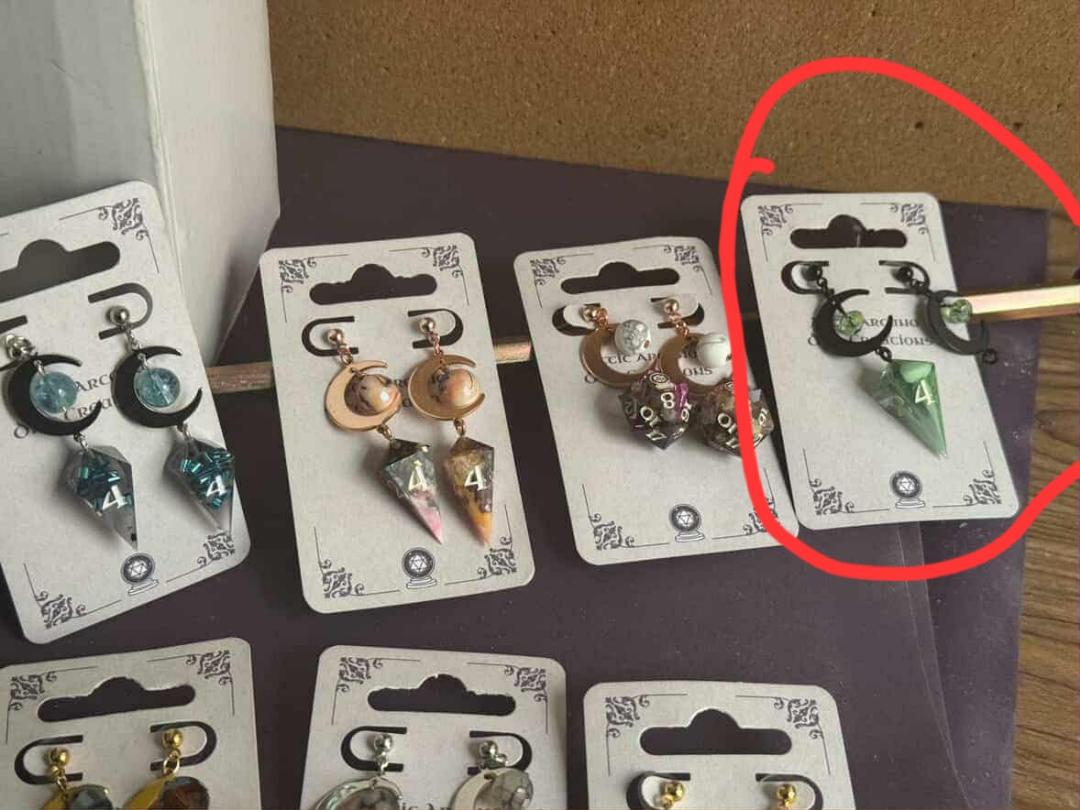 Each die is made with EnviroTexLite Resin, with various inks, foils, mica powders, and other inclusions. Beads vary between glass, plastic, and ceramic. The metal is sourced from a shop in Istanbul, Turkey.