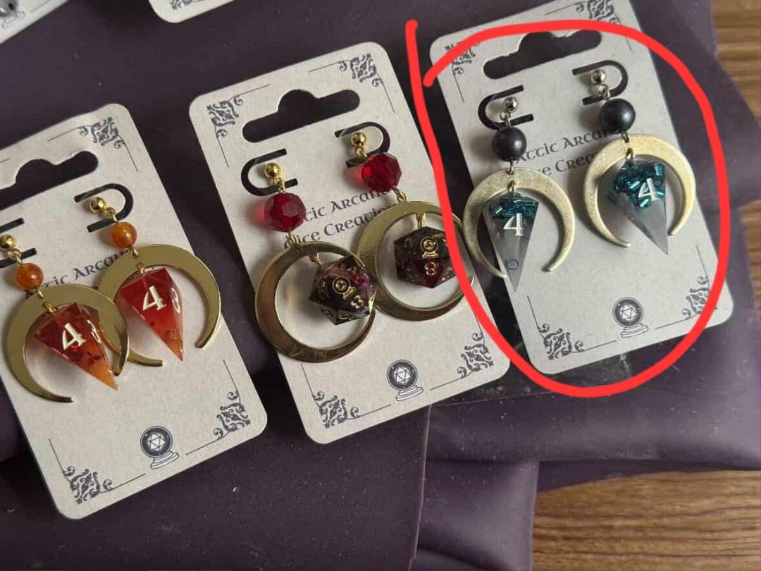 All Dice Moon Collection earrings feature 14mm d20s. The moons vary in size depending on style.